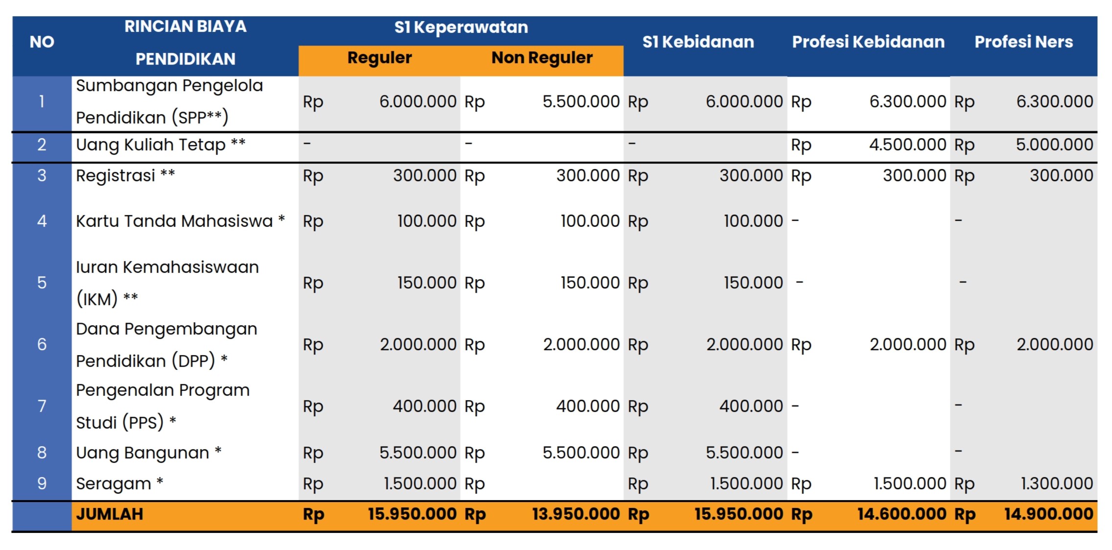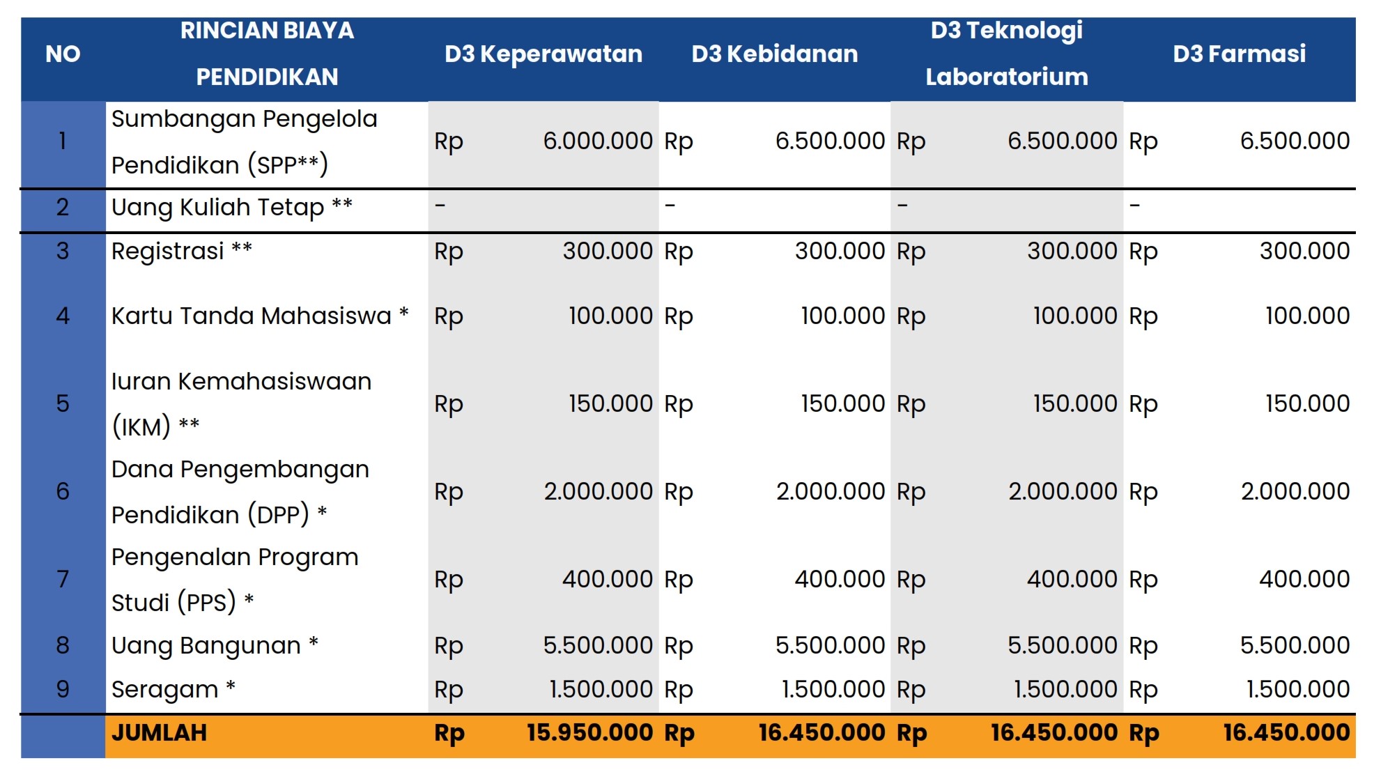 STIKes Karsa Husada Garut, berkomitmen untuk menyediakan pendidikan berkualitas dengan biaya yang terjangkau. Informasi biaya pendidikan berikut disusun untuk membantu calon mahasiswa memahami komponen pembiayaan yang perlu dipersiapkan selama masa studi.